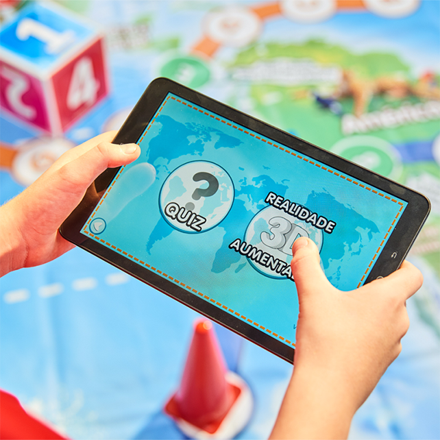 Alguns jogos Brinquelonas contam com realidade aumentada para uma experiência interativa e inovadora.